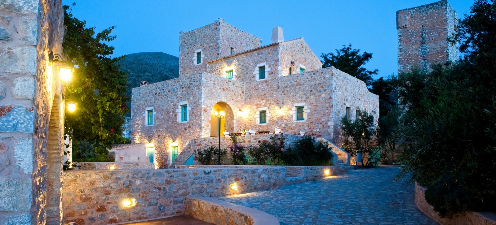 Pandora Hotel is found at Haria, which is one of the most interesting and well-preserved settlements of Mani, with many towers and Byzantine churches. It is 4km from Areopolis, 7km from the caves of Diros, and 2km from the beach of Diros with its crystal blue-green water. It has easy access to the beaches of Marmari, Tsipa, and Skoutari. It is a new hotel which is built of stone, according to the traditional architecture of the area, in a location of complete serenity with the company of bird song in the morning, and owl calls in the evening.